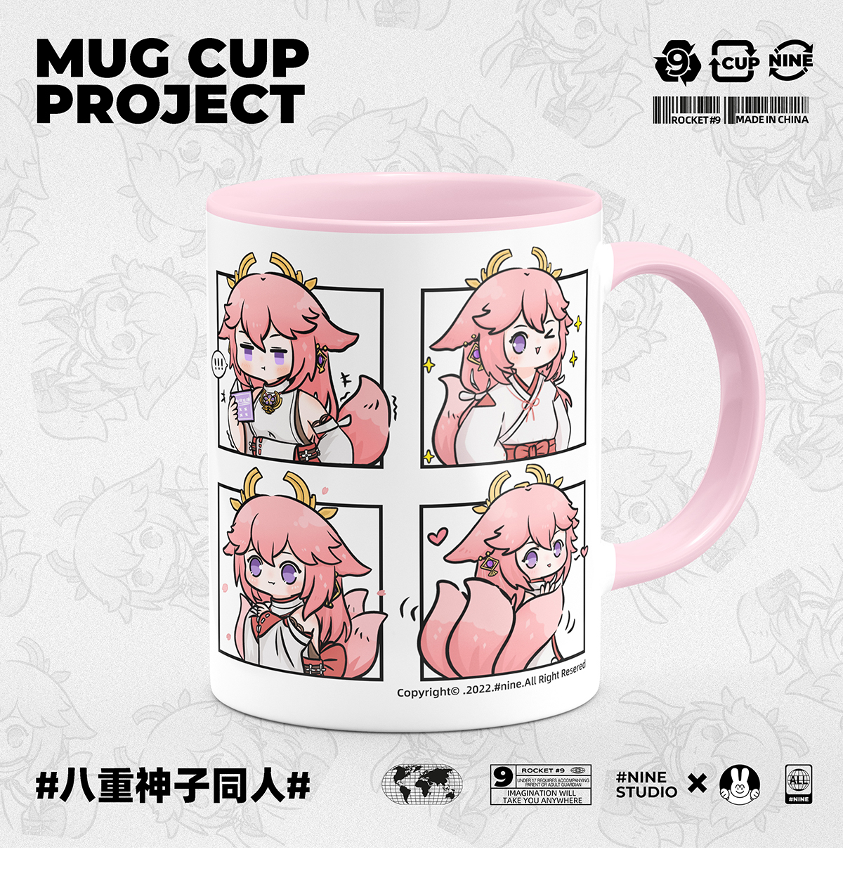 原神 コミック風かわいいキャラクター陶磁器マグカップ 八重巫女(4コマ)